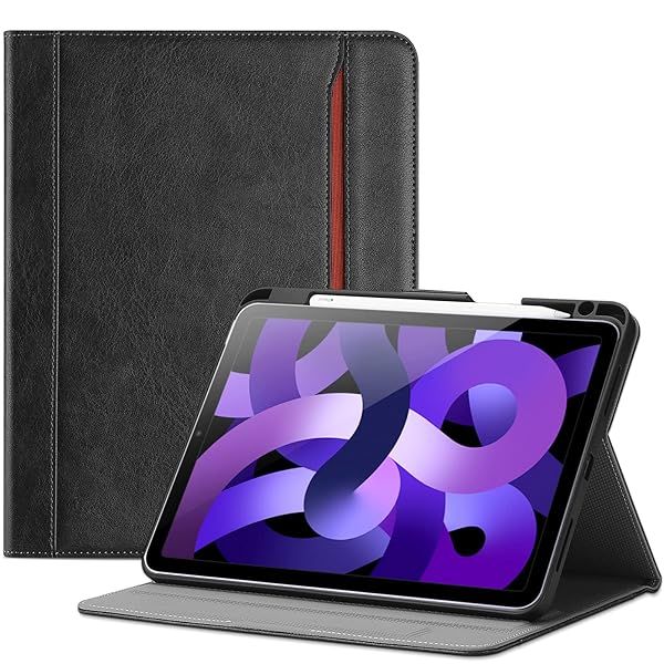 "ProCase Leather Stand Folio for iPad Air 11" (2024/2022/2020) - Protective Cover with Pencil Holder - Black"