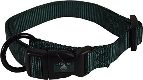 "Shop Hamilton Adjustable Dark Green Nylon Dog Collar 5/8" x 12-18" - Durable & Stylish Pet Accessory"
